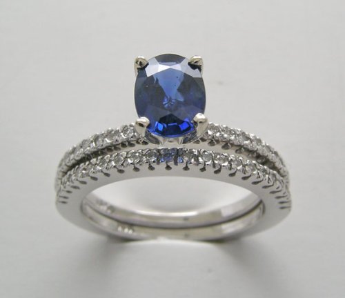 - Feminine Sapphire and Diamond Engagement Ring and Diaond Wedding Band