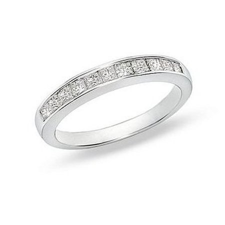 This is an excellent 1/2 CT Princess Cut Diamond Wedding Band in 14K White Gold. The Diamonds are I1-I2 Clarity and H-I Color. The Band is made in 14k White Gold and it weighs 1.8 grams. This ring will be a perfect gift for any occasion.
